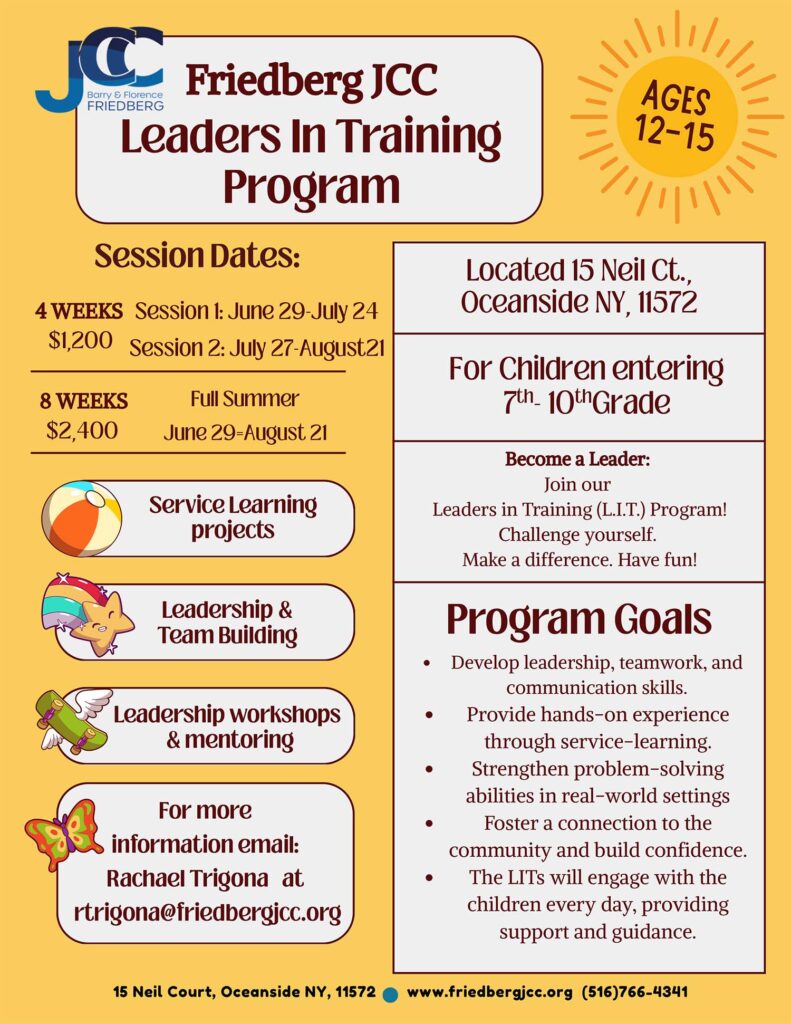 For information about the program, email Rachael Trigona at rtrigona@friedbergjcc.org or call 516-634-4179.